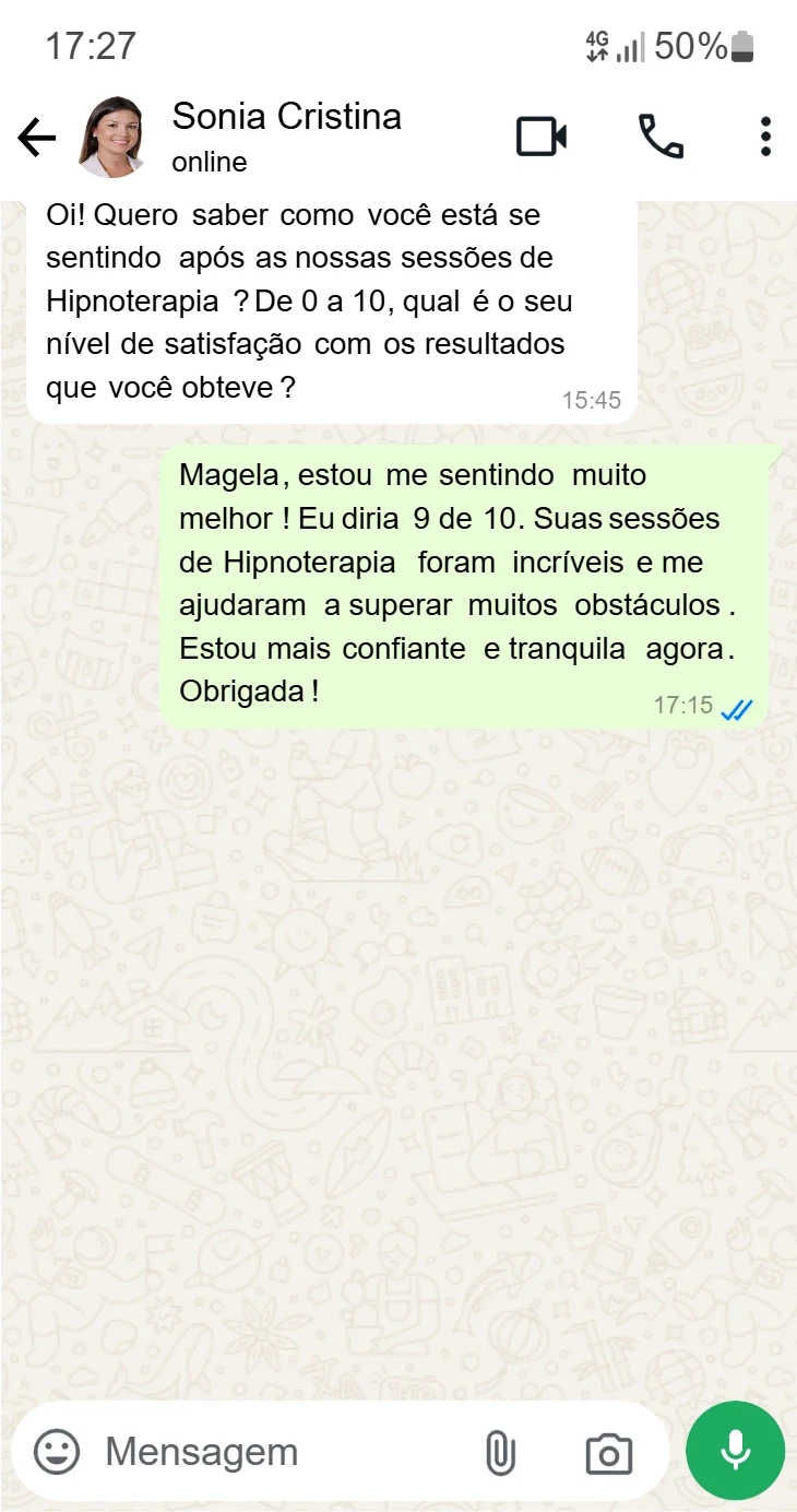 Veja o que meus clientes estão falando sobre o tratamento com Hipnoterapia