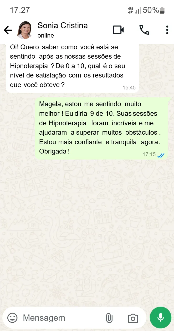 Veja o que meus clientes estão falando sobre o tratamento com Hipnoterapia